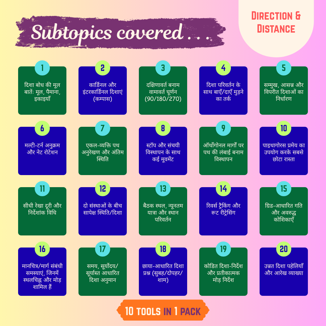 - 20 subtopics of Direction & Distance