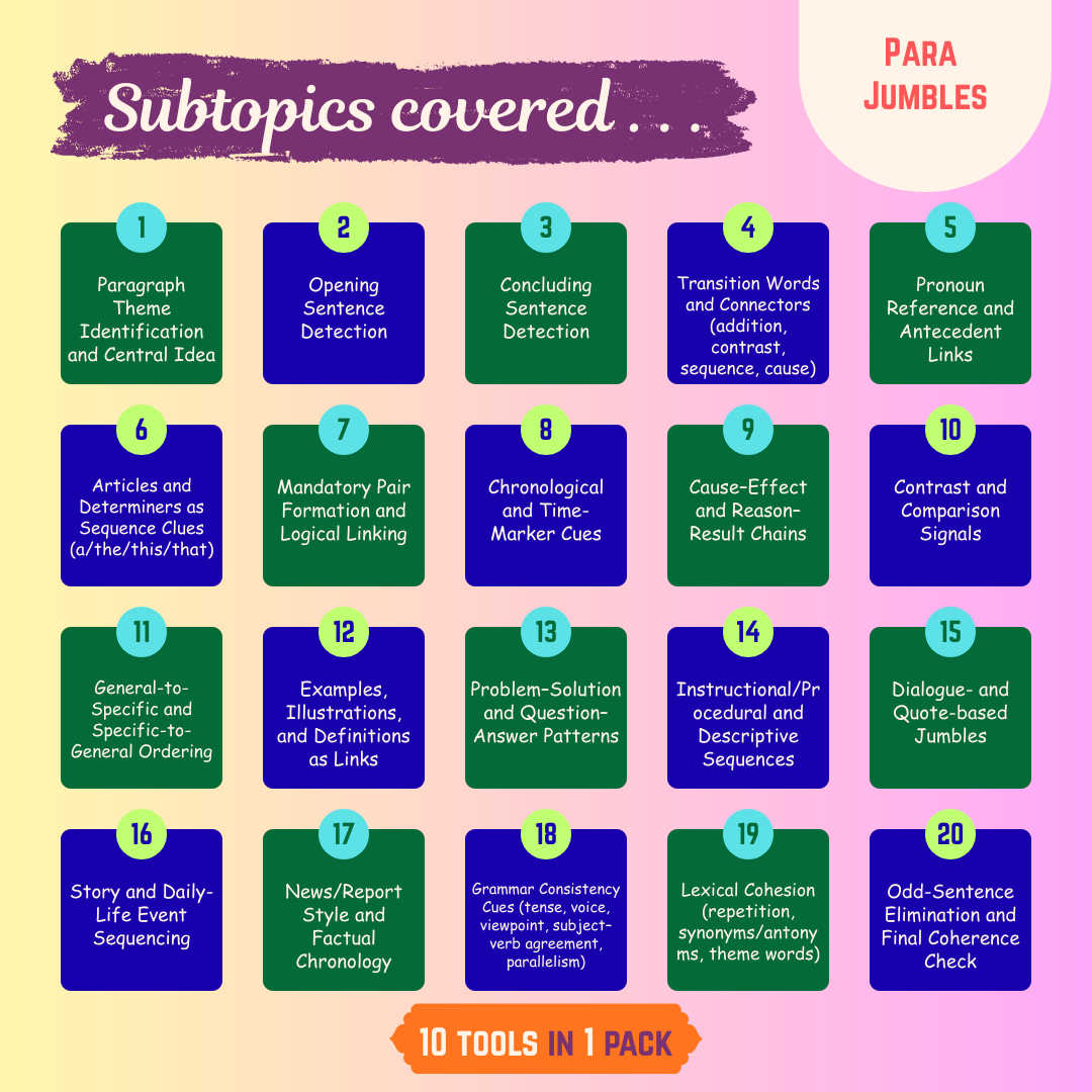 Go beyond MCQs with the Smart Topic Pack for Para Jumbles.